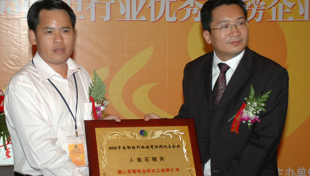 金石榮獲——中國(guó)櫥柜行業(yè)優(yōu)秀材料配套企業(yè)人造石精英大獎(jiǎng)